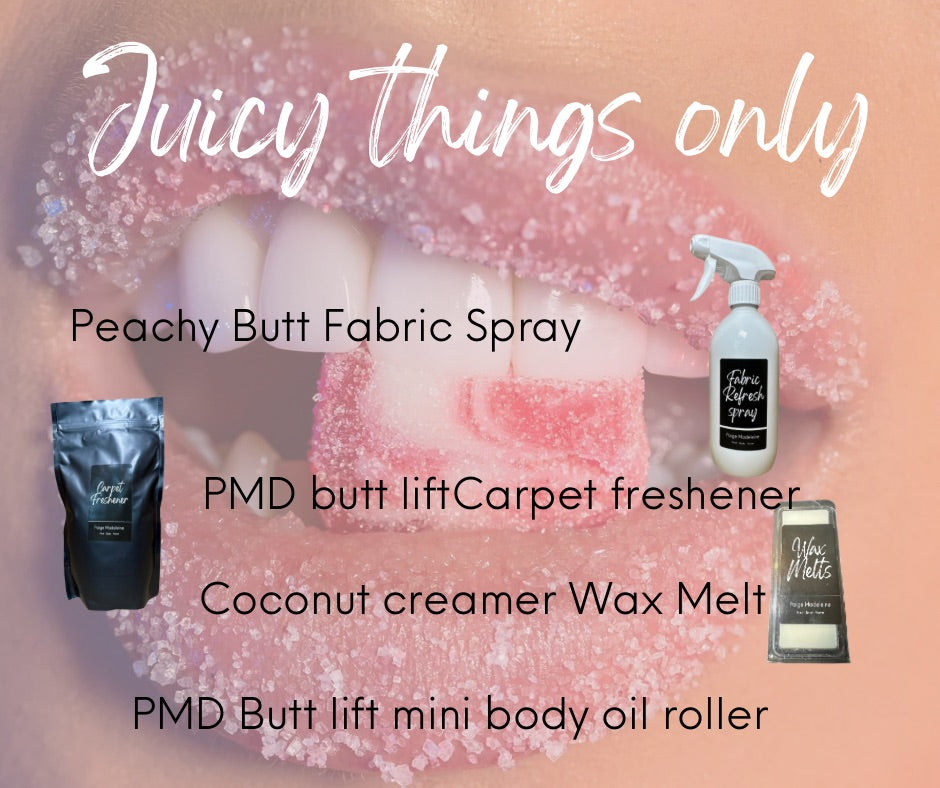 Juicy things only Bundle Home Fragrance Bundle ( Fabric Freshener, Carpet freshener , Wax melt and Body Oil)